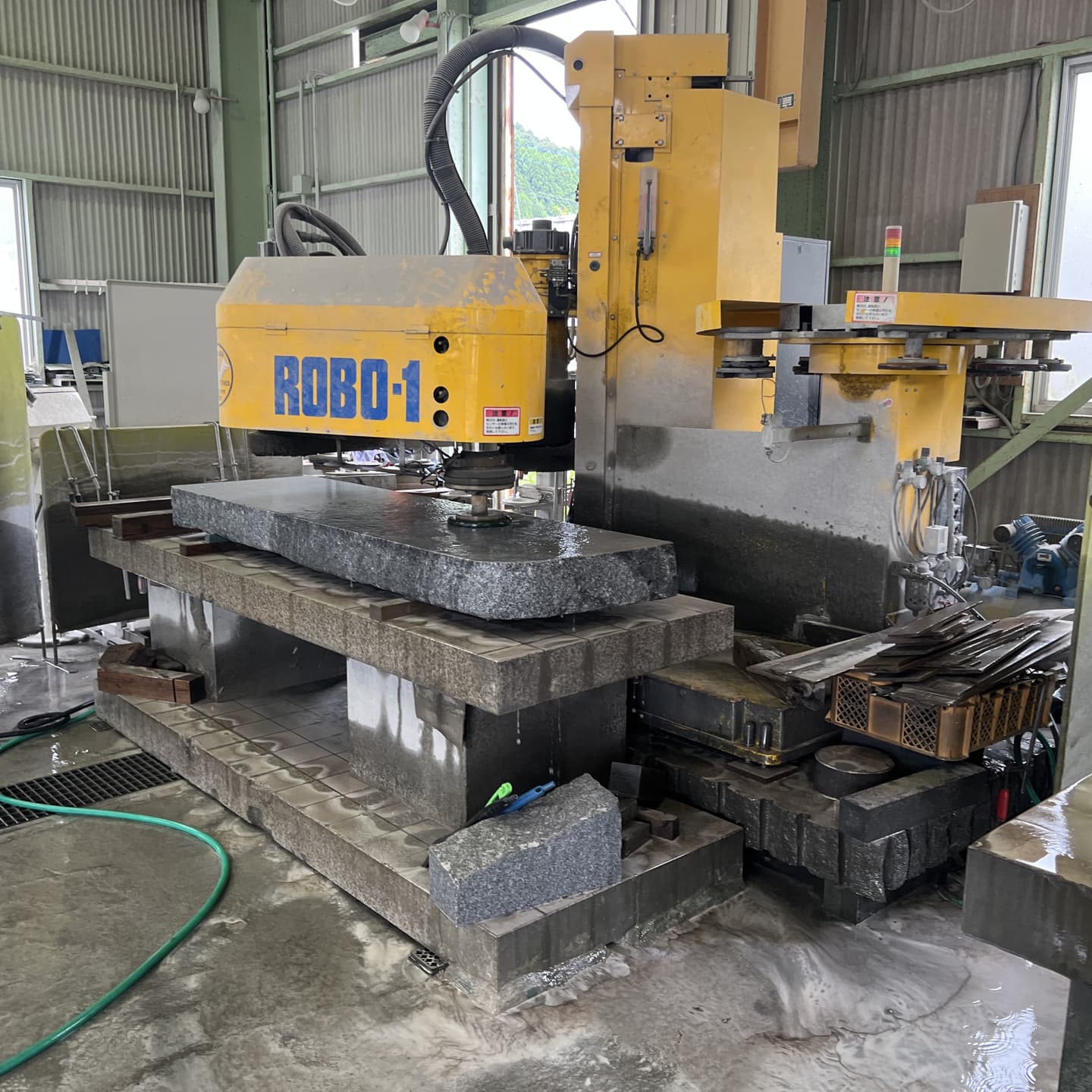 当社では自動の研磨機を複数台設備しており、安定した石材の研磨が可能になしました。特にロボワンとサイドワンという自動の設備を4台設備しており、業界上位の設備となっております。手磨きも熟練したスタッフが在籍しておりますので、様々な磨きが可能です。